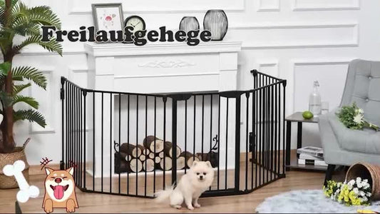 Pawhut 2 in 1 Welpenauslauf 5-TLG Klappbar Absperrgitter Hund Mit Tür, Metall